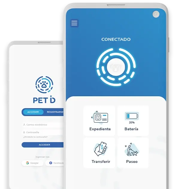 PET ID cuenta con una aplicación para dispositivos Android e iOS para enlazar y transmitir datos de forma inalámbrica por medio de la tecnología Bluetooth